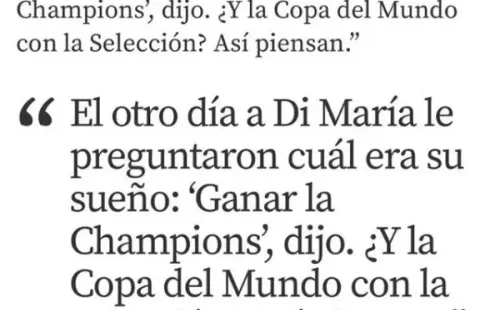 “El otro día le preguntaron a Di María cuál era su sueño: ‘Ganar laChampions‘, dijo. ¿Y la Copa del Mundo con la Selección? Así piensan“, le dijoDiego Armando MaradonaaDiario Popularen una entrevista publicada el último fin de semana.