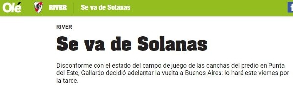Pero algunos factores alteraron el bienestar del plantel a tal nivel que Gallardo tomóuna drástica decisión: se vuelven para Argentina.