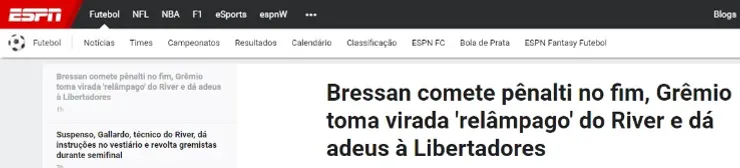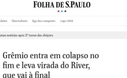Por eso, en Brasil se hicieron eco de la noche histórica deRivery las críticas volaron haciaGremio.
