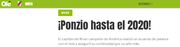Según elDiario Olé, Ponzio habría arreglado de su palabra su renovación de contrato, que vence en julio de este año.