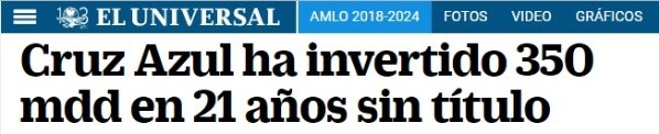 En los últimos 21 años, Cruz Azul ha gastado350 millones de dólares, según informóEl Universal.