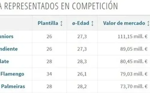 El cuarto equipo más caro y el primero de Brasil esFlamengo. Con un total de 79.03 millones de euros,Maurício Barbieri comanda al equipo más valorado del país carioca.