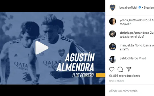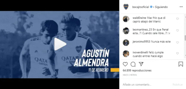 Tomándose con humor la falta de continuidad de Almendra en el primer equipo desde hace un tiempo, varios hinchas del elenco argentino se burlaron del futbolista en los comentarios de la publicación.