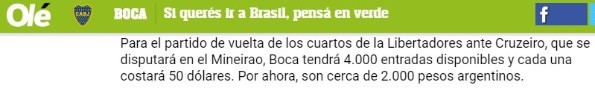 Es decir, que en Argentina, el precio es totalmente inestable. Debido al cambio constante del valor de la moneda estadounidense, los fanáticos sufren con el posible valor de la entrada.