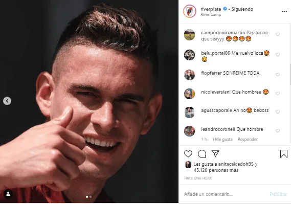 Bajo el comentario“Viernes de sonrisas”, la publicación del conjunto de Núñez se llenó de comentarios un poco subidos de tono.