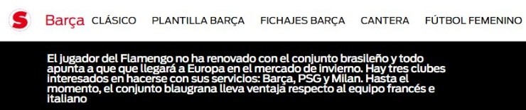 Según detalló Sport, el jugador habría tomado la decisión de no renovar su contrato con el Flamengo para forzar lo más pronto posible su partida.