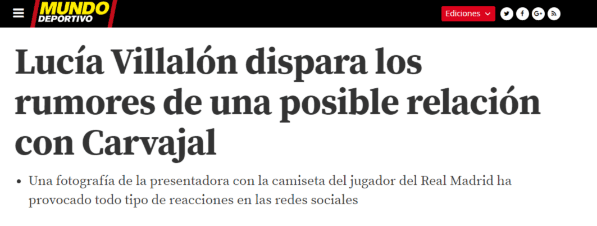 Según publicó Mundo Deportivo, la periodista estaría saliendo con DaniCarvajal, quien disputó la copa del mundo con la Selección de España.