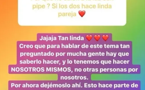 “Esto hace parte de mi vida privada, démosle tiempo al tiempo”, escribió la joven a la pregunta, pero con un mensaje bastante extenso que se ve en la siguiente imagen: