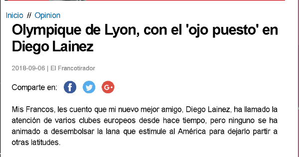 El diario RECORD mencionó que el Lyonharía una oferta más alta que el conjunto romano para llevarse al joven jugador de lasAguilas.