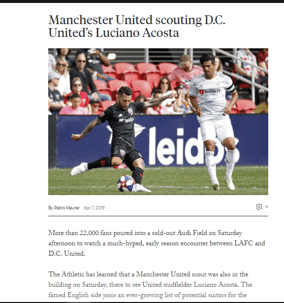 Asimismo, The Athletic reporta que el equipo envió scouts para seguir los pasos de Acosta en el choque de su DC United frente al LA FC de Carlos Vela, un encuentro que los angelinos se llevaron con un cómodo triunfo 4-0.