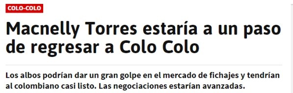 Entre 2008 y 2009 Macnelly Torres vistió la camiseta de Colo Colo y luego de 10 años podría retornar al equipo Albo, así lo confirman fuentes de Chile.