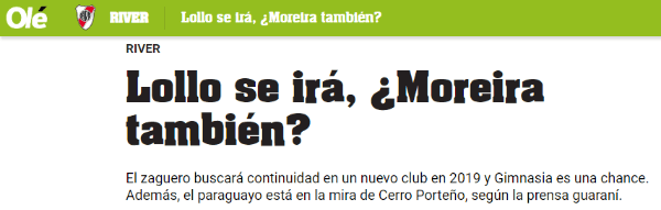 Hasta ahora se habla de un posible retorno a su país de origen: Paraguay. Allí, Moreirapasaría a vestir los colores de Cerro Porteño.