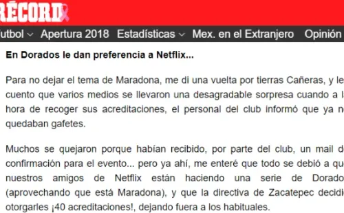 Según el periodista de RÉCORD,segeneró un malestar en Dorados por parte de los habituales reporteros, ya que no quedaban suficientes gafetes.