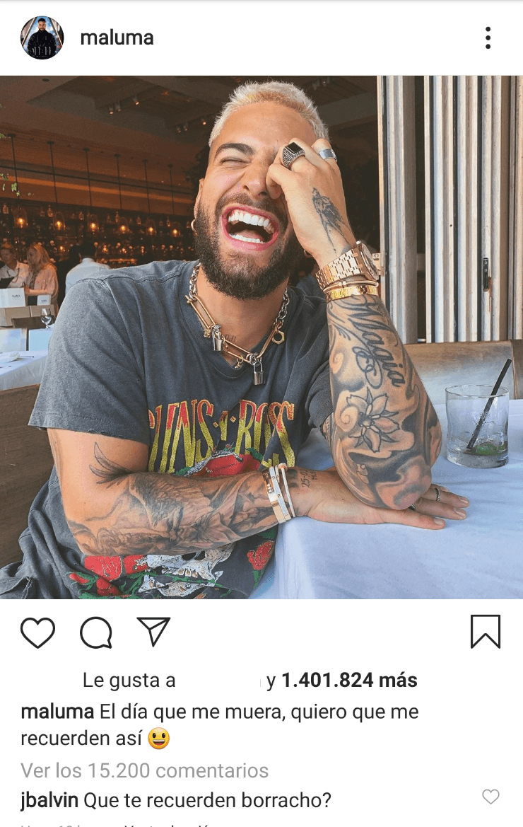 “El día que me muera, quiero que me recuerden así“, escribió Maluma para sus seguidores.