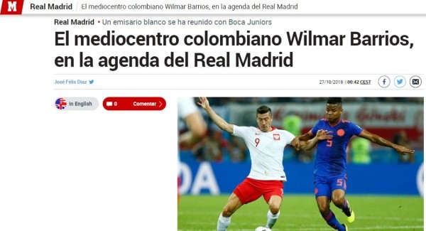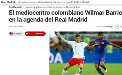 Se trata de Wilmar Barrios, volante central colombiano que actualmente defiende la camiseta de Boca Juniors. El elenco ‘Merengue’ tiene serias intenciones de incorporar un futbolista en dicha posición, según ese medio.
