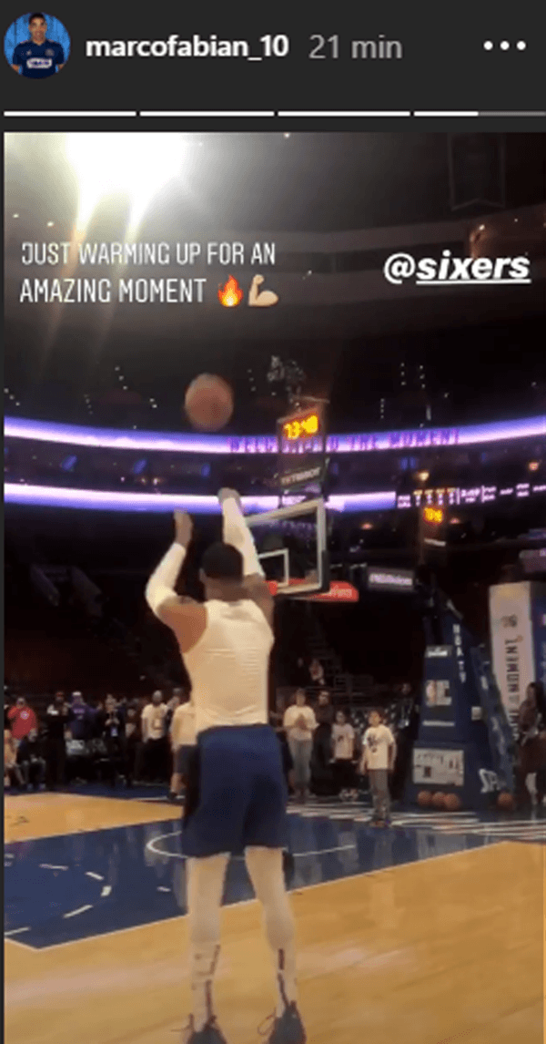El volante ofensivo mundialista mexicano subió una historia a su Instagram mientras observaba el entrenamiento de los Sixers, la franquicia más popular de la ciudad dentro del deporte más practicado allí.