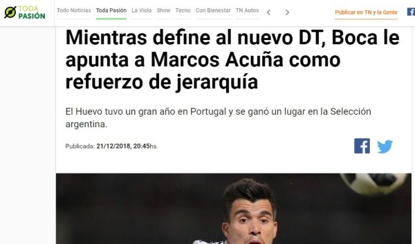Y quien comenzó a ser seguido en las últimas horas es un jugador de permanentes apariciones en la Selección Argentina, con pasado en Racing Club de Avellaneda y siempre pretendido por los grandes: Marcos Acuña.