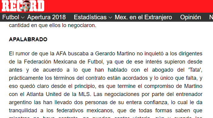 El diario afirma que los términos del contrato ya están acordados, y lo único que falta es que el director técnico finalice su compromiso con el Atlanta United de la MLS.