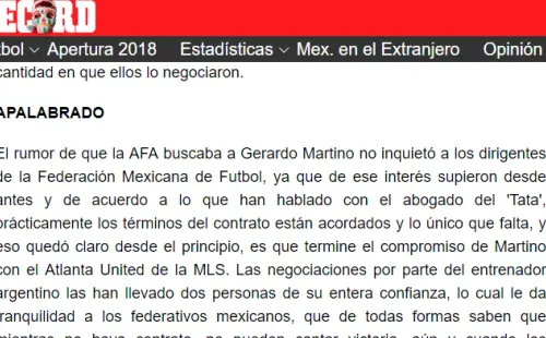 Según RÉCORD, Gerardo Martinoya está apalabrado por la Selección mexicana.
