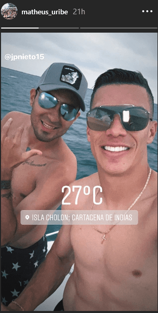 A juzgar por lo que sube a sus redes sociales, Mateus Uribe la está pasando sensacional en su país.