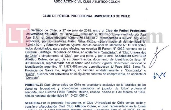 El jugador tenía todo arreglado para ir a Colón de Santa Fe. Es más, el contrato entre la Universidad de Chile y el equipo argentino fue firmado por todas las partes, incluido Pinilla.