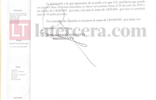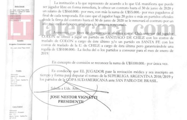 En ese contrato,“100% de los derechos federativos y el 100% de los derechos económicos asociados al jugador”fueron entregados a los de Santa Fe por 100 mil dólares.