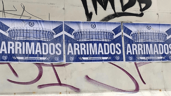 Impresos en color azul, en los carteles aparece la imagen del mítico inmueblecon el escudo de la Máquina y están pegados cerca del Estadio en diferentes bardas. Los letreros están firmados porLa Monumental 16, una de las barras de animación.