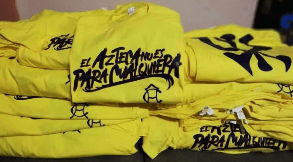 Además de las pancartas que colocaron los azulcremas, elRitual del Kaostambién preparó playeras con el siguiente mensaje:’El Azteca no es para cualquiera’.