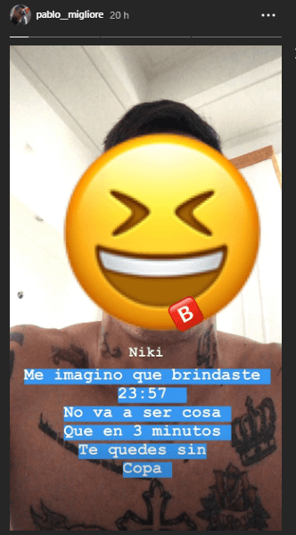 Haciendo referencia a la velocidad con la que al Millonario se le escapó la posibilidad de ser el campeón de América, el boxeador redactó: “Niki me imagino que brindaste 23:57. No va a ser cosa que en 3 minutos te quedes sin copa”.