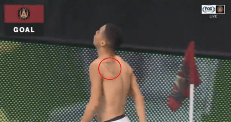 Era victoria para el Atlanta United, y el jugador salió disparado a uno de los rincones del campo de juego para celebrar efusivamente el gol junto a su hinchada.