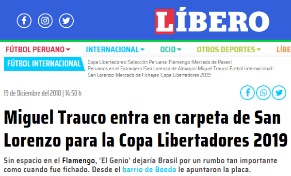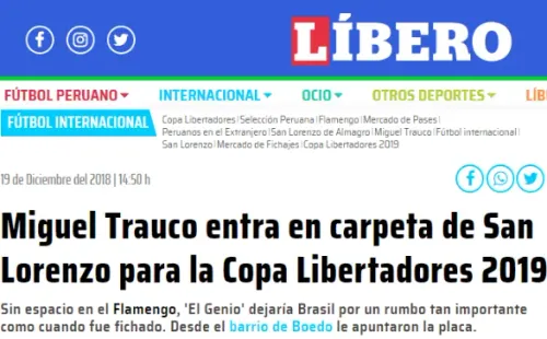 Según detalló Líbero, San Lorenzo, institución de Argentina, estaría dispuesta a abrirle las puertas del club para incorporarlo.