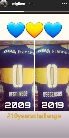 Ahora eligió sumarse al desafío de moda, el “10 year challenge”, pero nada más y nada menos que para trollear al eterno rival, River.