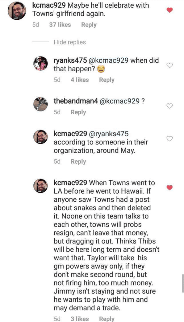 Esta información fue confirmada extraoficialmente hace semanasy aparentemente, la chica en cuestión habría borrado todo rastro de su relación con Towns.
