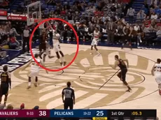Tras el intento de clavada,Anderson se recuperó rápidamente y le propinó un terrible gorro a contra mano a Oladipo, golpeando el balón cual mate de volley ball contra el tablero.