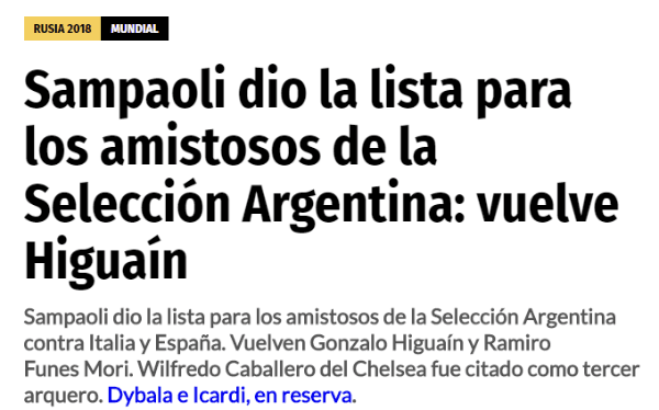 Jorge Sampaoli hoy entregó la lista de convocados de la Selección Argentina para gira por Europa previa al Mundial de Rusia.