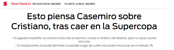 “No podemos tapar las cosas. Cristiano demostró aquí que ha sido el mejor del mundo, pero ya es pasado, no podemos seguir pensando en él.Tenemos que hablar de los que están en la plantilla, los que se han quedado. Queremos hacer un equipo más fuerte, más sólido, pero Cristiano ya es pasado”, aseguró.