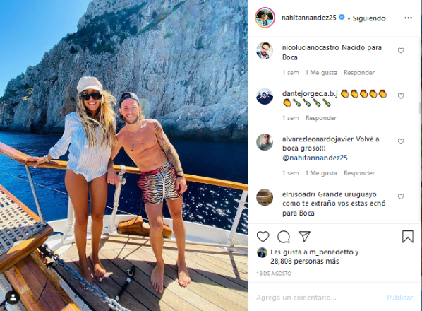 Adjuntando una postal en donde se lo puede ver con su pareja, el uruguayo recibió un extenso puñado de saludos por parte de sus seguidores. Lógicamente, los mensajes de los hinchas de Boca no tardaron en llegar.