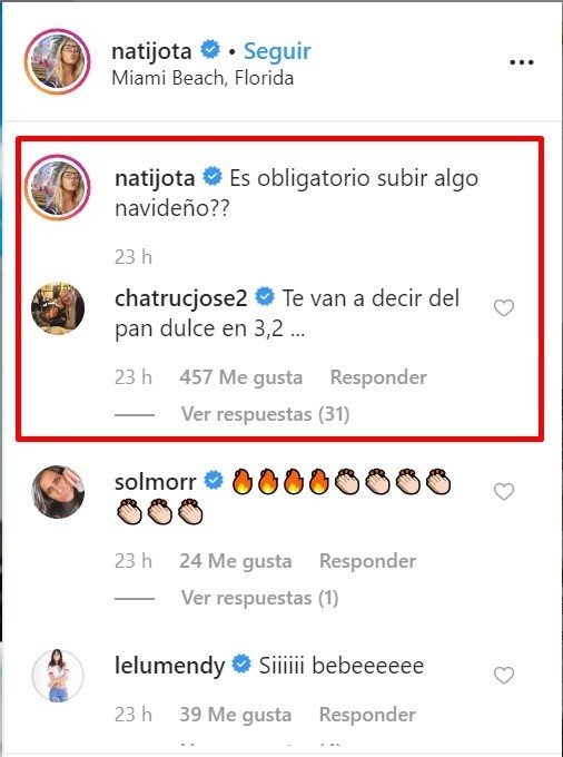 “¿Es obligatorio subir algo navideño?”, escribió en la misma. YPepeChatruc, su compañero y amigo, se adelantó a todos con su comentario.