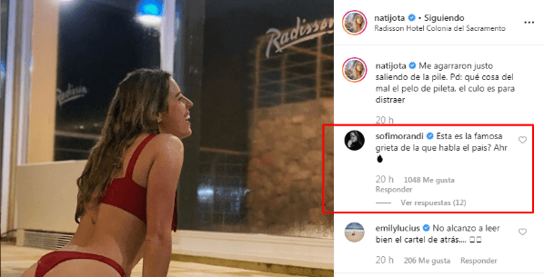 Al instante, los comentarios no tardaron en llegar. Hubo decenas, pero el mejor todos fue el de Sofi Morandi.