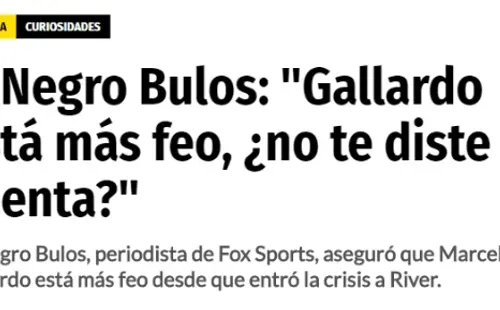 Hoy hicimos una nota del Negro Bulos, periodista de Fox Sports, quien dijo que Marcelo Gallardo “está más feo” desde que River no para de perder.