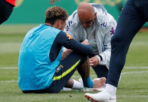 Neymarsintió un dolor en la misma zona que se lesionó, el tobillo derecho, y debió ser asistido por los médicos del conjunto nacional. No obstante, la estrella del Paris Saint-Germain pudo terminar la práctica y hasta se mostró alegre con sus compañeros.