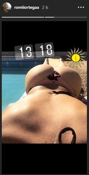 En este caso, Romina publicó una historia en su cuenta de Instagram. En la misma se la puede apreciar al borde de la pileta, aunque el foco de la foto está en otro lado…
