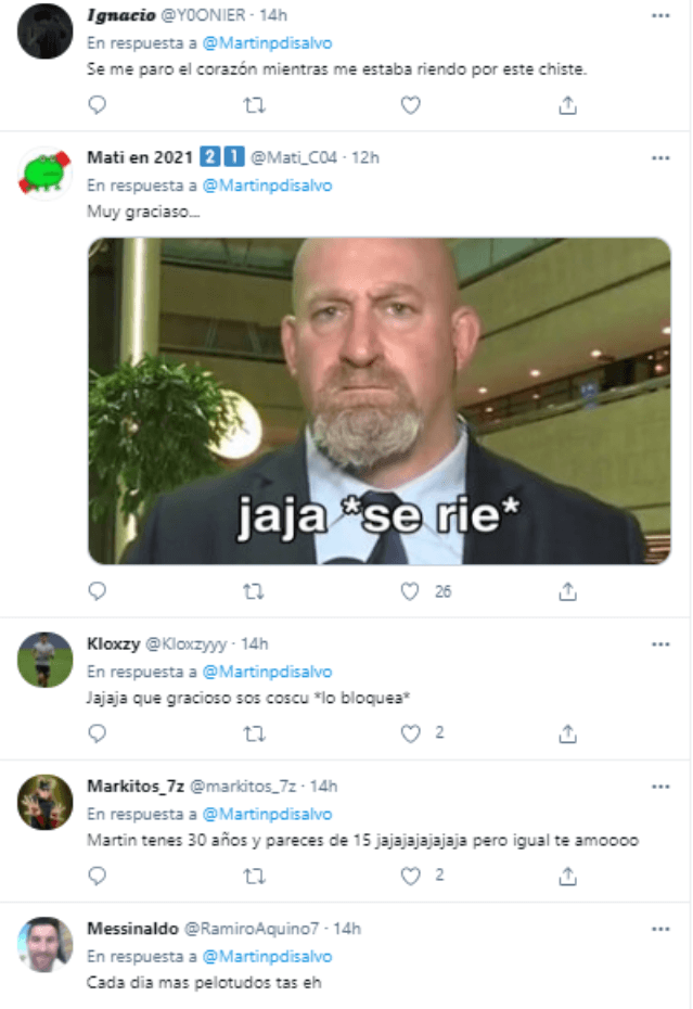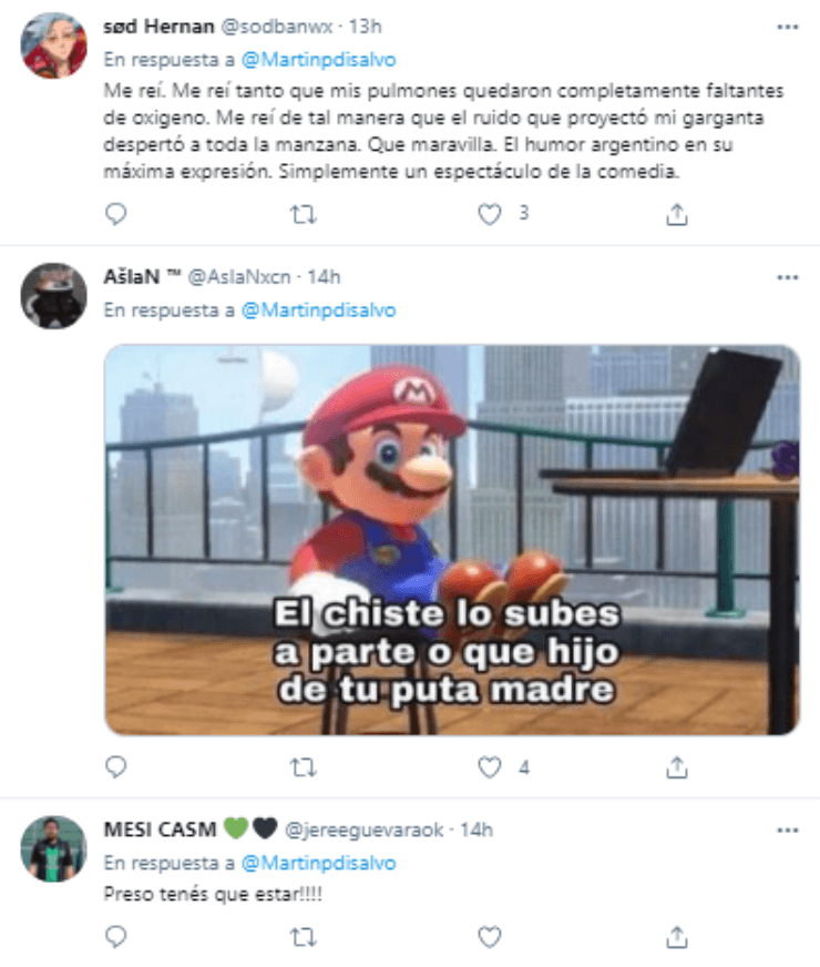 Recopilando una suma cercana a las 300 respuestas, el streamer no tardó en recibir una catarata de críticas por la calidad de su chiste. “Preso tenés que estar”,”Se me paró el corazón mientras me estaba riendo por este chiste” y “Muy gracioso…” fueron algunas réplicas que el chiste de Coscu recibió.