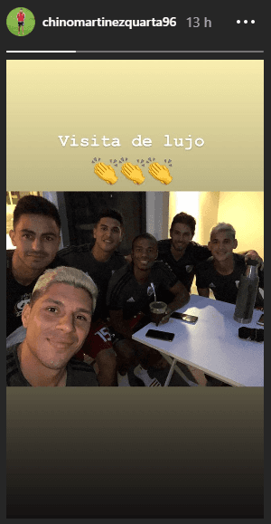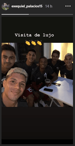 A través de sus cuentas de Instagram, jugadores comoEnzo Pérez, Lucas Martínez Quartay Exequiel Palacios subieron una imagen compartiendo unos mates con el volante argentino que emigrará a la MLS.