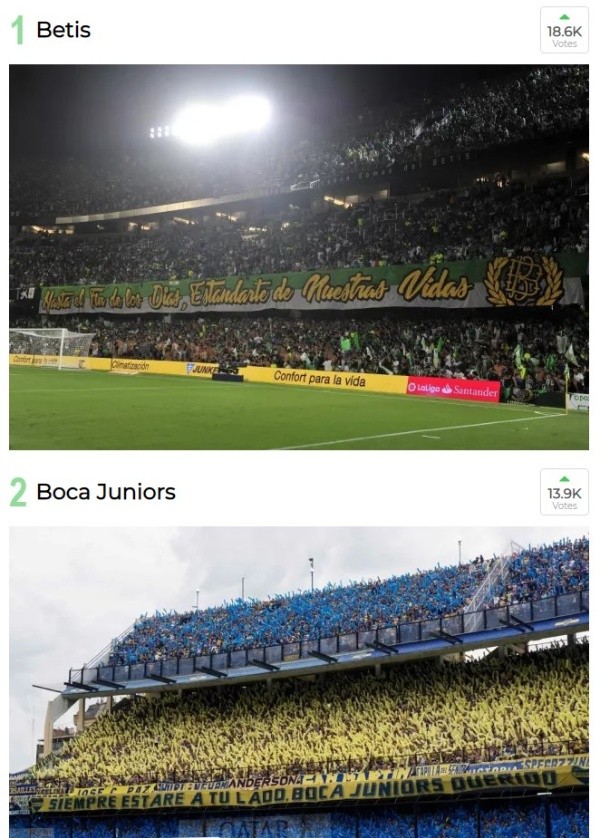El diario españolMarca, que el pasado lunes premió a LionelMessicomo MVP y Pichichi de 2018, lanzó un ranking de hinchadas a nivel mundial con votación abierta a todos sus lectores.