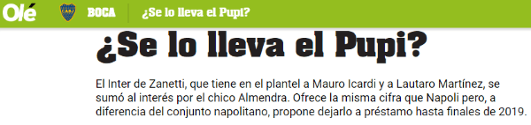 Según informó Olé, se sumóInteral interés de Almendra y tendría pensado igualar la misma cifra del conjunto napolitano.