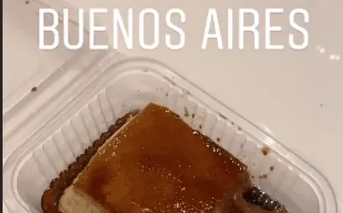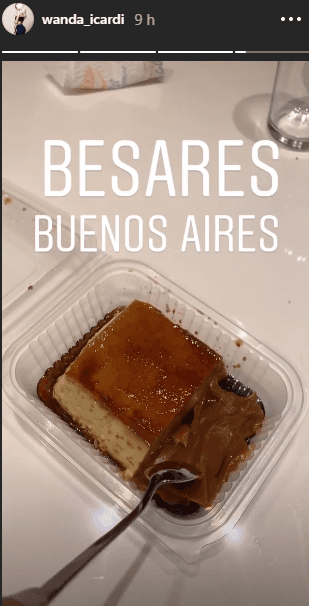 Y parece que Wanda estaba con ganas de sacarse un antojo, porque lo primero que hizo al pisar suelo argentino fue comer budín de pan con dulce de lecha y caramelo.