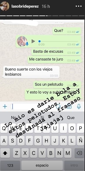 Con dos historias de Instagram, lo escrachómostrando las conversaciones de WhatsApp en las que no habían palabras muy felices.