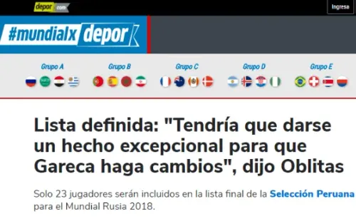 “Para cualquier técnico de selección es difícil cambiar el equipo con el que uno ya viene trabajando y además clasifica a un Mundial. Creo que tendría que darse un hecho excepcional para que el técnico haga muchos cambios en el plantel. Algo que mucha gente no entiende hasta ahora es que a Rusia van 23 jugadores, y tres son arqueros”, declaróJuan Carlos Oblitas en BBVA world.