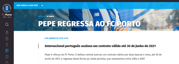 El Porto hizo oficial la vuelta del defensor de la Selección de Portugal, quien levantó la Eurocopa en 2016.